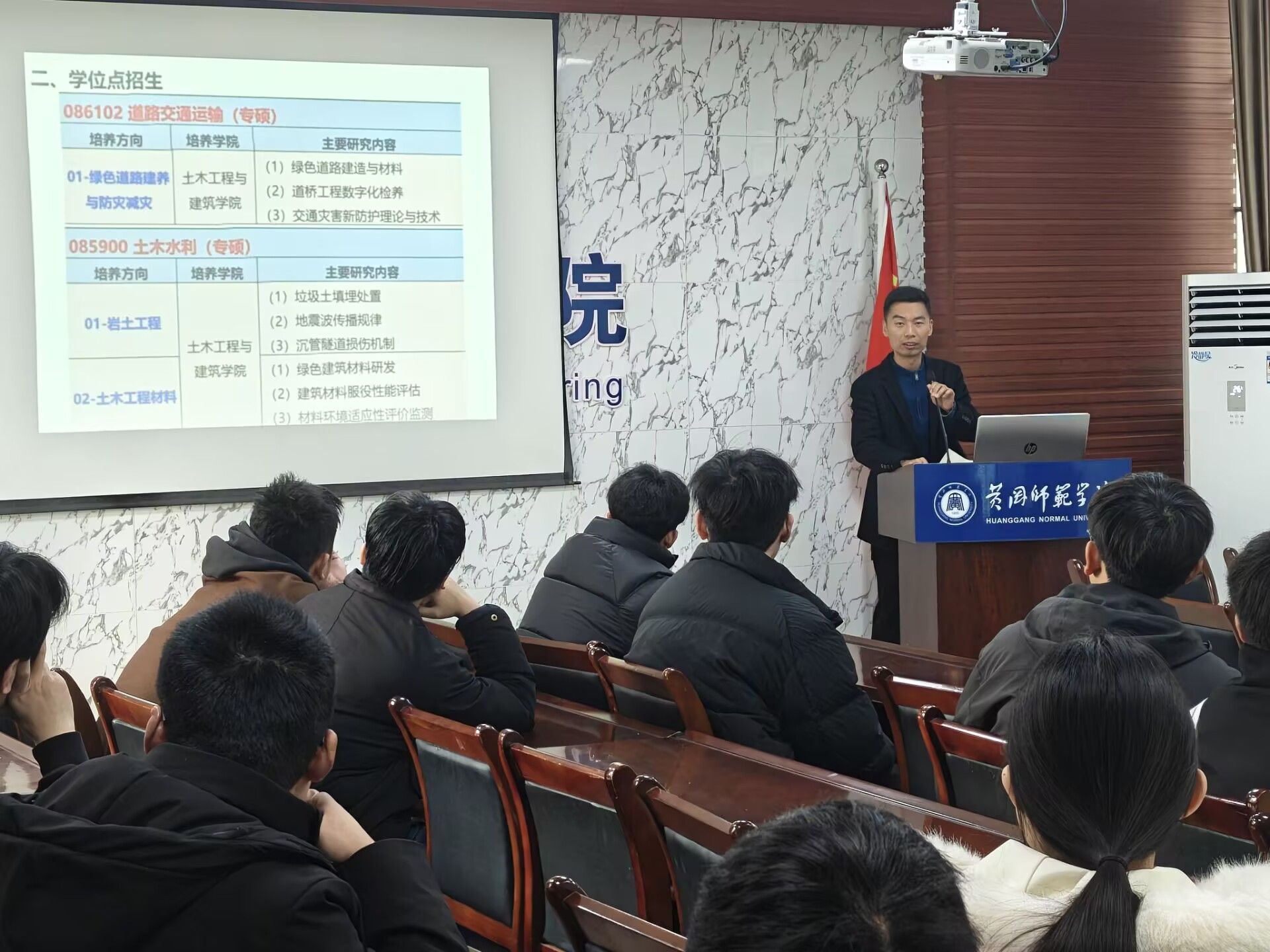 (通讯员 刘雨荷)2月26日,最新吃瓜视频网站黑料院长李业学率队赴黄冈师范学院开展2025年研究生招生宣传。土木工程系主任范建辉、教学委员会副主任尹晓萌博士、研究生工作办公室主任周衡共同参与。
