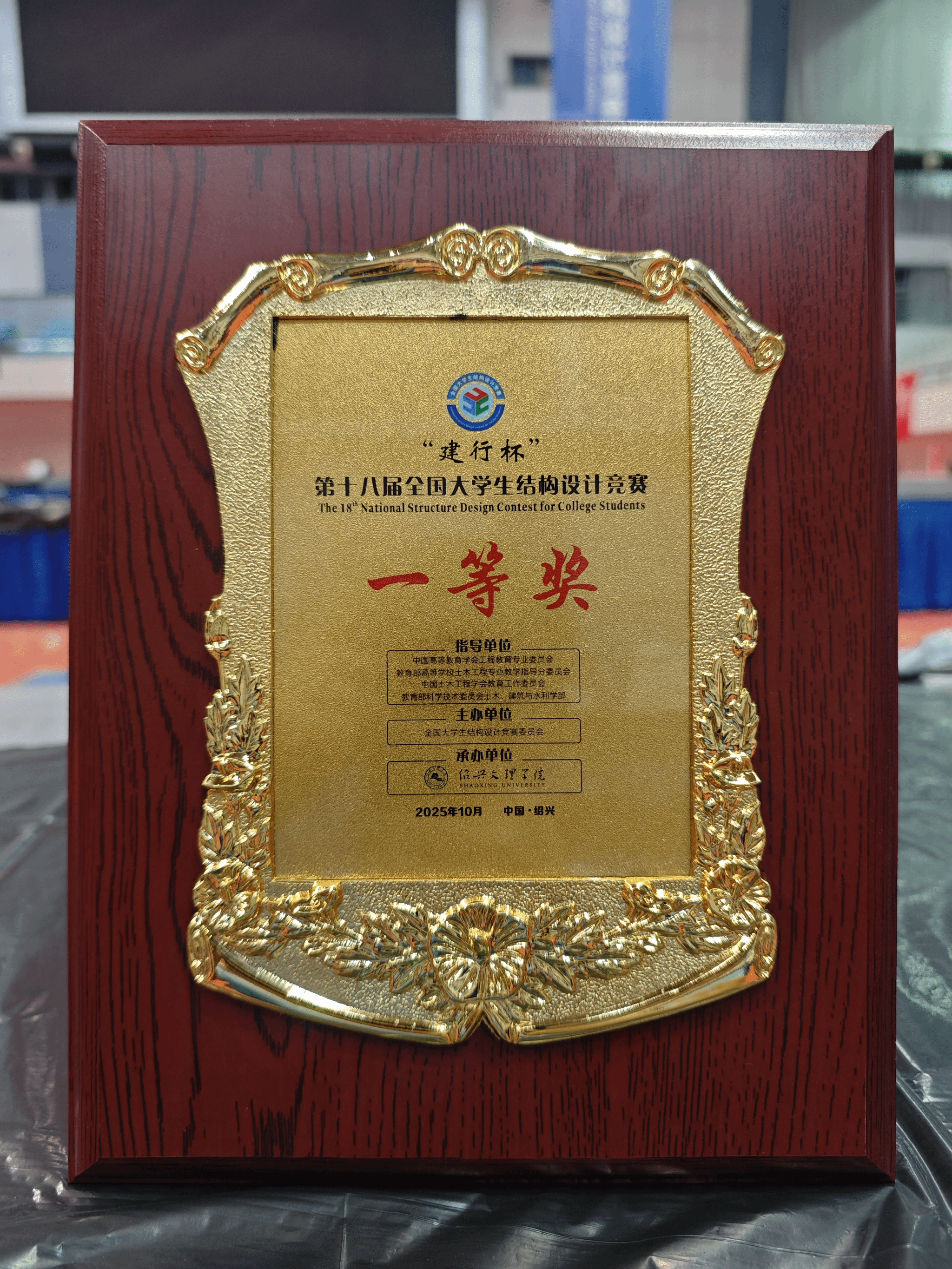 在范建辉、徐福卫全程指导下,参赛学生自今年三月开始备赛,围绕赛题反复钻研,不断优化模型细节,精细打磨模型构件,力求达到结构最优。在比赛现场,团队参赛作品精准扛住各级测试,凭借良好的承载性能与稳定性从众多参赛作品中脱颖而出,成功荣获一等奖。