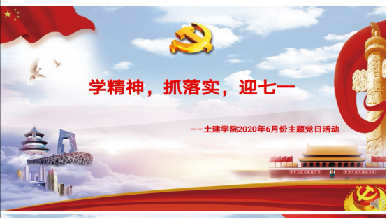 本次党日活动围绕六项内容展开。第一项,全体起立,奏唱国歌《义勇军进行曲》。第二项,由连乾带领全体学生党员学习并诵读《中国共产党章程》,加深对党的认识,强调政治信仰。第三项,白钰同志带领大家学习中央编印的《习近平关于“不忘初心、牢记使命”重要论述选编》。她讲到作为一名学生党员,我们必须时刻牢记党员第一身份,始终不忘入党初心。党员不是政治标签,也不是政治荣誉,而是共产主义的先锋战士。“全心全意为人民服务,不惜牺牲个人的一切,为实现共产主义奋斗终身”,是《中国共产党章程》的规定,也是我们入党时的自觉选择。第四项,土木工程系学生党员石志欣为全体学生党员讲党课,她带领全体学生党员们加深学习了党的十九届四中全会公报解读和党的十九届四中全会重点提法,并呼吁学生党员们在日常生活中要坚持踏实实干,锐意进取,切实履行《中国共产党章程》规定的各项职责,以榜样为标杆找差距、知不足,以榜样为鞭策强决心、聚动力,以榜样为参照明方向、循路径,我们就能更好焕发共产党人的时代风采和精神风貌。第五项,各支部依次交流发言。其中高博在发言中讲到通过对两会精神深入系统的学习,作为新一代的青年人,更应该严格要求自己,要不断深入学习新时代重要讲话精神,贯彻落实党的指导,紧跟党的脚步,不落伍不畏惧,积极履行新时代青少年该有的责任和担当。