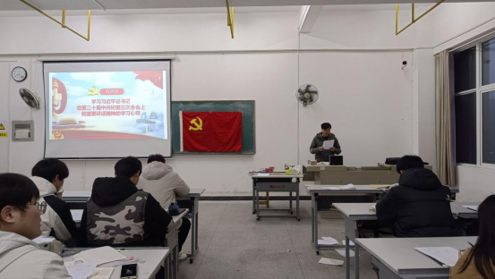 本次党日活动围绕七项内容展开。第一项,各位学生党员全体起立,奏唱国歌《义勇军进行曲》;第二项,全体学生党员重温入党誓词;第三项,由文耀同志带领大家学习并诵读《中国共产党章程》,加深对党的认识,加深政治信仰;第四项,由王云松同志带领大家学习习近平总书记在第二十届中央纪委三次全会上重要讲话精神的心得体会;第五项,梅玉婷同志为大家讲党课;第六项,各支部交流发言,肖阳、张墙、朱亚棋依次发言;第七项。各支部围绕“接续奋斗开新局,乘势而上勇担当”主题相互讨论。
