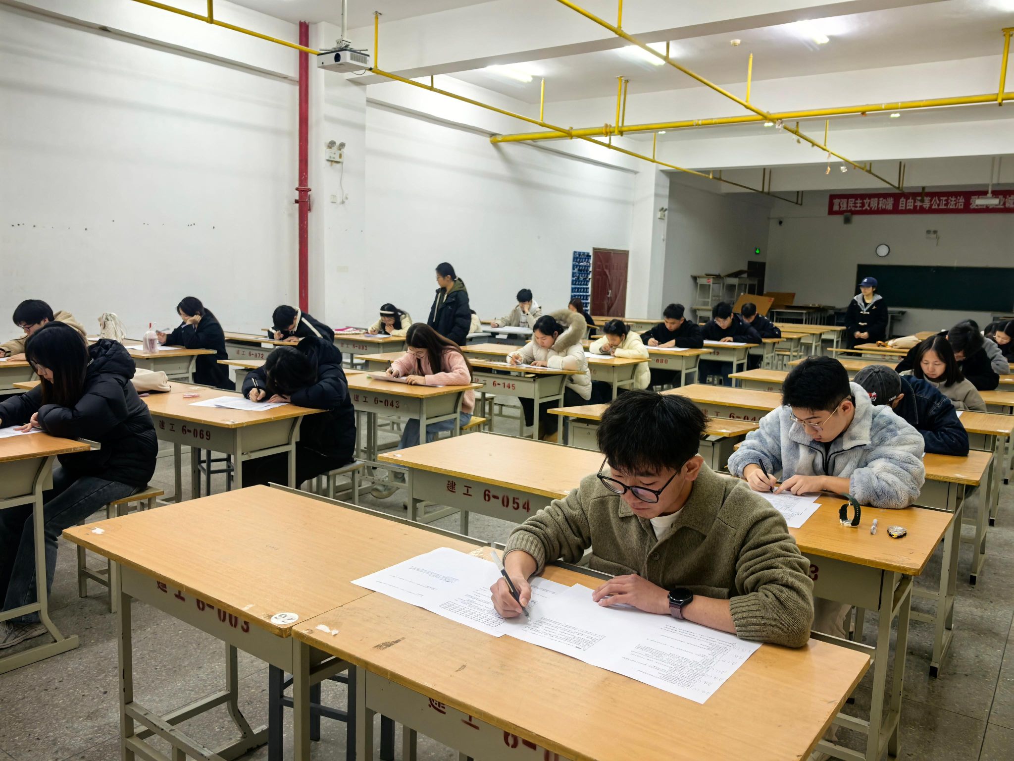 考试正式开始前,监考人员详细说明了考场规则和注意事项,提醒同学们保持沉着心态,自觉维护考场秩序。考试过程中,全体考生全神贯注、认真作答,展现了严谨的考风考纪和良好的精神面貌。