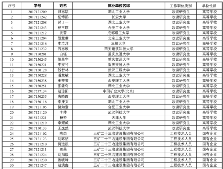 就业方向:土木工程专业主要培养从事工程建设所需要的土木工程师,以项目实训的特有教学方式着重培养学生的实践动手能力和综合应用能力,使学生具备较好的社会竞争力,能较好的胜任房屋建筑、市政工程、道路与桥梁工程等工程项目的设计、施工、监理、管理等工作,并具备考取国家住建部注册工程师的能力。毕业生能够在工程设计、工程建设、监理咨询、房地产开发、检测以及相关行业的政府行政管理等单位从事与专业有关的技术和管理工作。本专业与中铁十一局、中建三局和中化六建等知名企业建立了长期的战略合作,拓展学生的实习实践和就业,近几年来,70%以上学生被中建三局、中铁十一局、汉江国投、中国一冶、五矿二十三冶、湖北工建等大型央企国企录用,考研录取率在20%以上,整体就业率97%
