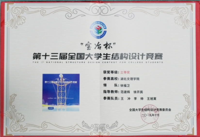 办学成效:土木工程专业2018年获批湖北省普通本科高校“荆楚卓越人才”协同育人计划建设项目,2020年获批省级一流专业建设点,先后获批省级教研项目3项,省级一流课程1门,校级教学成果奖特等奖1项、一等奖1项、二等奖2项,各类国家级竞赛奖项57项,省部级竞赛奖项45项。