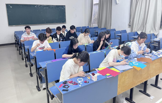 活动伊始,负责人向同学们介绍了活动流程及手工制作方法。在了解到具体的制作方法后,同学们已经跃跃欲试,希望能够马上投入制作中。活动过程中,同学们在进行简单的构思后,选择了适合自己作品的无纺布,并进行裁剪和后续的细节制作。同学们在创作时用色大胆,敢于创造,富有想象。他们通过一块块色彩缤纷的无纺布,拼接起自己对母亲的爱与感恩。一块小小的无纺布,织出的不仅仅是精美的图案,还有一脉相承的文化底蕴。一笔一画,一针一线,都蕴藏着同学们对母亲的浓浓爱意,表达着对母亲深深的敬意与感激之情。