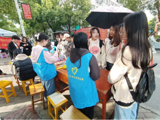 活动开始前,社员和志愿者们早早地去布置好场地,等待着同学们来参加活动。桌面上的箱子里装满了写着雷锋同志事迹和其精神相关问题的小纸条,参与活动的同学可从中抽取一些题目并现场回答。志愿者们则在展台现场制作各式各样五颜六色的小动物魔术气球,作为奖品发放给积极参与问答活动并答对的同学,激励更多的同学参与到此次活动中。