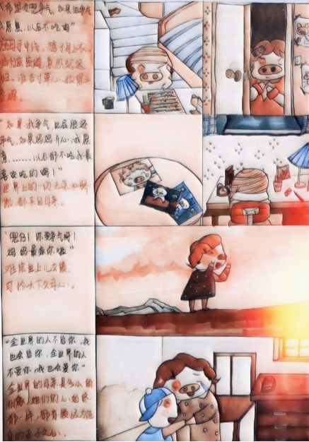 此次活动从5月18日一直持续到25日,参加比赛的26名同学,通过不同形式的活动作品,将深藏在自己心中的感恩情怀淋漓尽致的表达了出来,无论是三行情书,还是绘画﹑音频﹑征文作品,都激发了学生们心灵深处最真挚的情感。这次活动同学们留下的不仅仅是一篇篇简单的文字﹑一句句生动的朗诵﹑一幅幅惟妙惟肖的绘画,在字里行间﹑深情歌颂﹑绘画中的细节刻画都流露出了同学们对老师和父母深切的感恩和爱意。