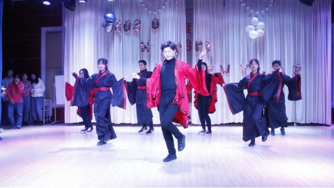 元旦晚会在土建学院团委·学生会各部门的元旦祝贺视频中拉开序幕。随之,一场劲爆的开场舞《girls’ stage》嗨翻全场,为元旦晚会带来了火热开端。元旦晚会共十四场节目,每一场都独具匠心,舞蹈﹑歌曲﹑小品﹑情景剧﹑配音等等节目类型穿插其中,给予观众一场视觉盛宴。