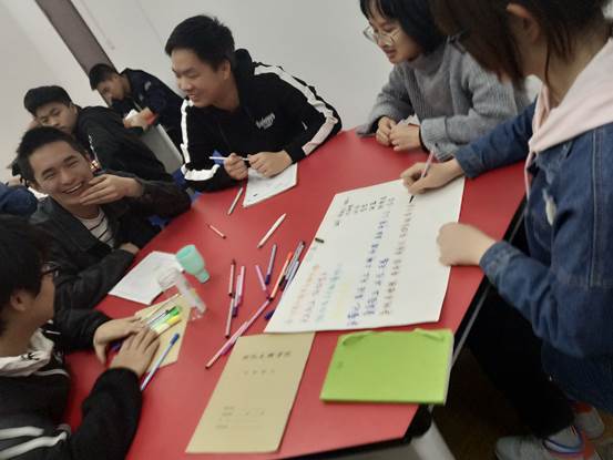 参加本次活动有医学院、政法学院、计算机与工程学院、数学与统计学院等院系。活动以游戏的形式展开。首先,大家进行“听花抓手指”的热身小游戏,简短的游戏可以锻炼同学们的反应能力。接着同学们进行第二个互动游戏:在本子上画最能代表自己的九个东西,以画作相互介绍自己,在轻松愉悦的氛围中彼此认识,陌生感也减少了。之后同学们又进行了你画我猜的游戏,通过肢体语言的交流,不仅考验了同学们的表达能力,还增强大家的默契程度。活动进行到最后一项:小组契约书,期间各小组长带领组员在台上踊跃发言介绍各自小组。