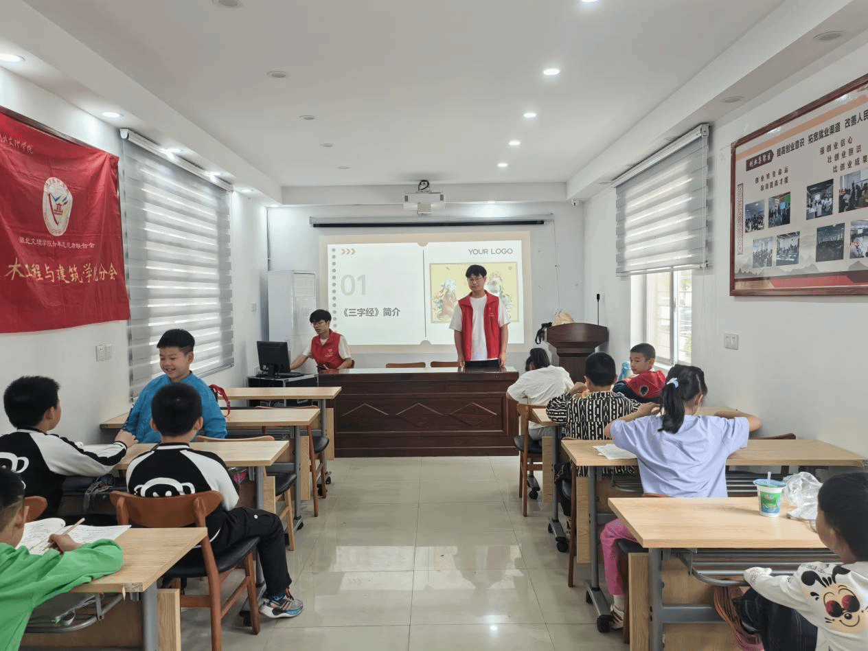 活动当天,5名大学生志愿者清晨集结,有序完成场地布置、教学引导及后勤保障工作。他们以热情与耐心赢得了社区居民的认可,用实际行动诠释了“奉献、友爱、互助、进步”的志愿精神。活动围绕《三字经》展开,志愿者们通过生动讲解和视频展示,向孩子们介绍了这一经典著作的历史背景与文化价值。在问答互动环节,孩子们积极发言,分享对“人之初,性本善”等名句的理解,现场气氛热烈。随后,志愿者带领孩子们进行手工绘画创作,鼓励他们以《三字经》中的故事为灵感自由发挥。一幅幅充满童趣的作品不仅展现了孩子们对传统文化的感知,更传递了文化传承的活力。活动结束后,志愿者们还协助清理现场,确保环境整洁,展现了新时代青年的文明素养。