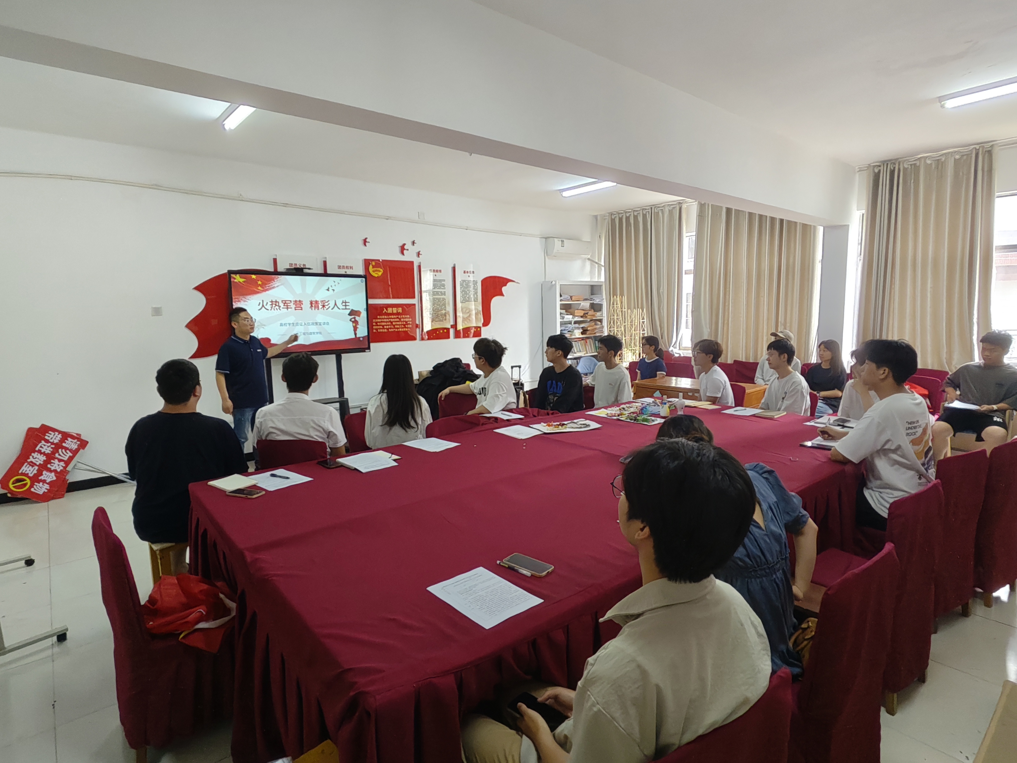 (通讯员 何之瑞)5月27日中午,土建学院于“筑梦”一站式学生社区开展以“火热军营 精彩人生”为主题国防教育主题会。辅导员潘将军担任主讲人,通过政策解读、国防知识普及、军营故事分享等形式,为学生们带来一堂生动的国防教育课。