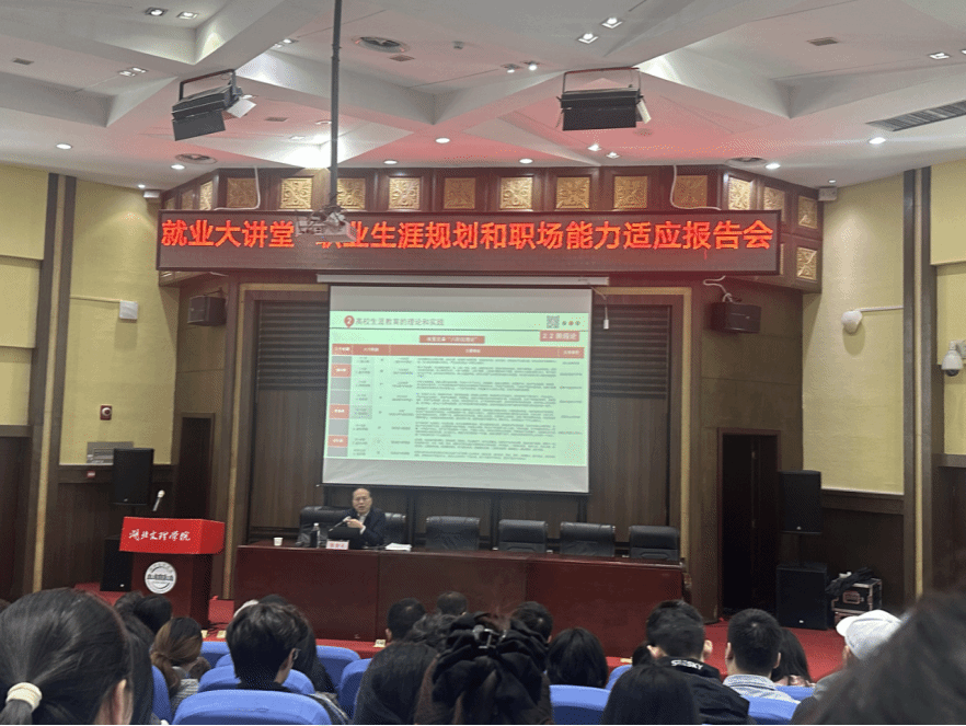 讲堂特邀主讲嘉宾湖北省生涯教育研究会会长张金元围绕“职业生涯规划与职场适应能力”作专题报告。他系统讲解了职业生涯规划的基本理论与方法,结合当前就业形势与典型实例,深入分析了大学生在职业选择与发展中常见的困惑与挑战。张金元强调,在人工智能快速发展的时代背景下,同学们应注重培养跨学科素养、学习能力与创新思维,不断增强职场适应力,为未来职业发展打下坚实基础。互动环节中,同学们积极提问,张金元逐一进行解答,帮助大家进一步厘清个人发展路径,增强生涯规划与决策能力。